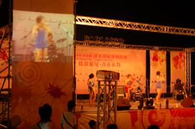 以青少年搖滾為主題的「搖滾滬尾‧青春派對青少年 搖滾」(攝影/朱建智)今年藝術節舉辦的淡水相關歌曲創作、影像紀錄、圖文說故事等徵件活動, 讓參與民眾多了一點不同以往的新鮮嘗試。「我的家鄉、我的歌」歌曲創作比賽, 由街頭唱遊人阿杰自彈自唱的「淡水阿嬤」, 以4 萬8 仟多張高票獲得網友最夯獎。「我的淡水故事」參賽影片「F r e e