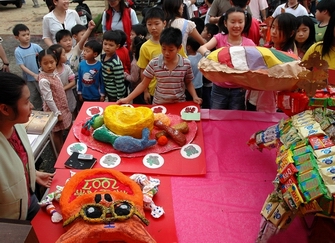 今年九年一度的八庄大道公輪祀到中泰國小學區,也就是草埔尾來主祭。去年的五月初,草埔尾鄉親浩浩蕩蕩的去北新庄迎回大道公,由於每月兩次的犒軍祭典設在中泰活動中心,就在中泰國小附近讓學校週邊熱鬧了一整年。這個學期開始,也在淡水文化基金會的協助之下,在學校進行關於大道公的鄉土課程,期望生活在這塊土地上的孩子,都能對身邊正在發生的事情有所了解。 課程進行的期間,從一開始介紹大道公祭祀的由來、他的生平故事,進而讓孩子更加認識所居住的社區,並討論每個月兩次的拜拜對他們來說有什麼感覺。在社區裡的孩子雖然有些宗教信仰不一,但都能盡力去了解不同的文化。有些家裡也會參與祭祀活動的孩子,更會主動與同學分享的家中祭祀的過程,透過討論、分享,也讓學校的孩子對這裡更多一份認同的感覺。 到了五月一日(農曆三月十五)大道公生日那天,全校的孩子一同前往祭祀的會場,親身去體驗現場熱鬧氣氛。雖然從學校到會場只有短短幾百公尺,但是因為人潮、車潮不斷湧入,帶著孩子的老師每個人心中都有些忐忑,擔心著孩子們的安全。幸好孩子們也都能平安的參與活動,尤其是五、六年級的孩子,能在會場中完整的演一齣戲,並且能跟旁邊的歌舞表演一起「拼台」,還得到不少觀眾的喝彩,對他們來說也是難忘的經驗。回來後,孩子更對祭祀的文化以及形式提出自己的觀點並互相討論,這樣的學習經驗,是最貼近他們生活,最有實質意義的學習。