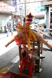 馬偕博士紀錄大道公祭典神豬的擺飾 與今日習俗仍大致相同(攝影/梁建新)
