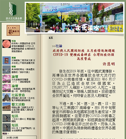 此次三級警戒,園區閉園,許多例行業務都暫停運作,正好讓基金會同仁抽出時間專注於電子報的營運維護。在大家的協力合作之下,《文化淡水》電子報補齊了缺漏的期數,連結故障等問題也進行了修正,功能日趨完善。未來將